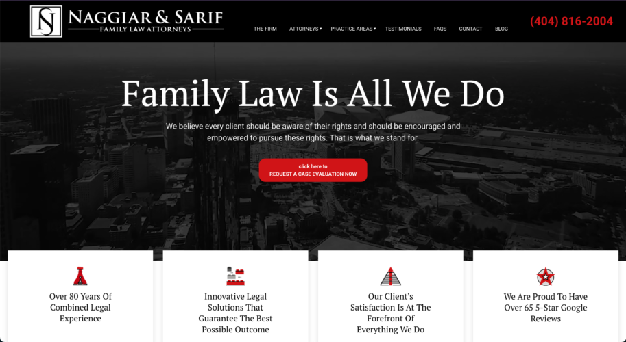 If you or a loved one require legal help with family law matters, contact Naggiar & Sarif Family Law Attorneys. Our accomplished attorneys specialize in family law and divorce, dedicated to guiding you through tough times. While we’ve earned accolades, our clients’ satisfaction is our main focus. We’re committed to achieving their objectives, aiming to be Georgia’s top family law attorneys. Accessibility and responsiveness are our priorities for delivering outstanding results.